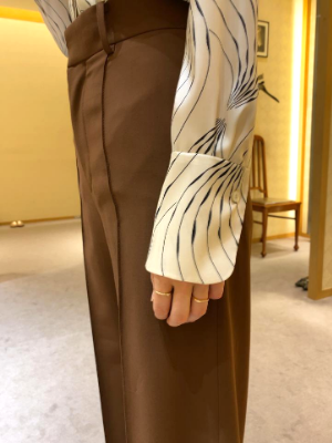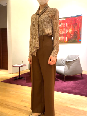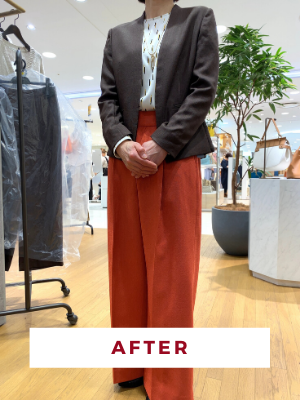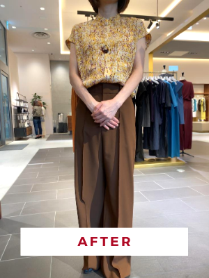 同じブラウンのパンツも、トップスを変えれば全く違う印象になる。人とは違う、E様の ‘個性’ と ‘似合う’ を両立したアイテムを。