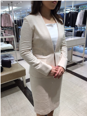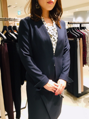 産休の間、しばらくお買い物を我慢していて、手持ちで着られるオシャレな通勤服が全くありません!とY様。4月に控えているお子様の入園式にも、大人の女性として相応しい、洗練されていて、かつオシャレなスタイルをご希望。Y様の上品さが際立つデザインを、厳選してご提案。