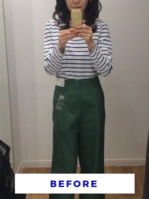 試着室から出てきた自分が、今まで見たことないようなオシャレ感で、本当に驚いています。長年感じていたコンプレックスや、服に対する思い込みも、ガラリと変わったショッピングでした。