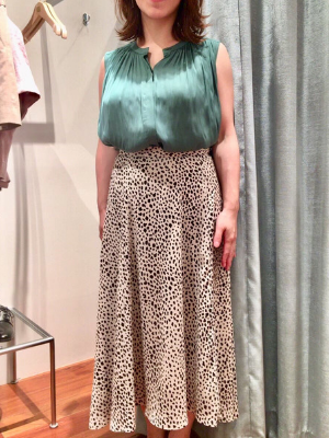 華やかブラウスは、お逢いする人の気持ちも、着こなすE様の気持ちも一気に軽やかに!試着室から出ていらっしゃる際のE様は、最高の笑顔!