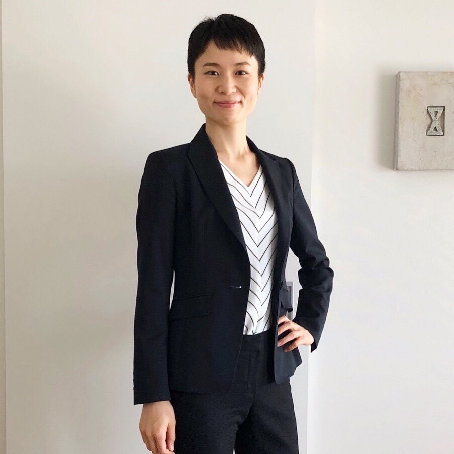 どちらが正解ではありません。どちらが、より貴方が必要としているイメージを与えることが出来るか。山口様の場合は、インテリアコーディネーターとしての職業上、写真右のほうがより相応しいスタイルと言えますが、銀行員として働くのであれば、むしろ硬派なイメージを強調する黒やネイビーを工夫して着るほうが相応しいと言えます。