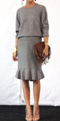 流行に関わらず、納得のいく丈感を探してみてください。長めのスカートが似合うのは比較的背丈がある方や、脚のバランスが全体的に長い方。ヒールをお召しになる方も、脚の長さが自然と伸びますので、スカートの丈感が多少長くても調整がききます。