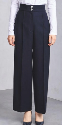 直線的な骨格の女性は、比較的腰まわりがしっかりと硬い素材の方がお似合い。例えば上の例に挙げたセイラーパンツ。ボタンがポイントになるオシャレなパンツですが、この手のパンツはお腹周りが硬い素材ですので曲線タイプには向きません。