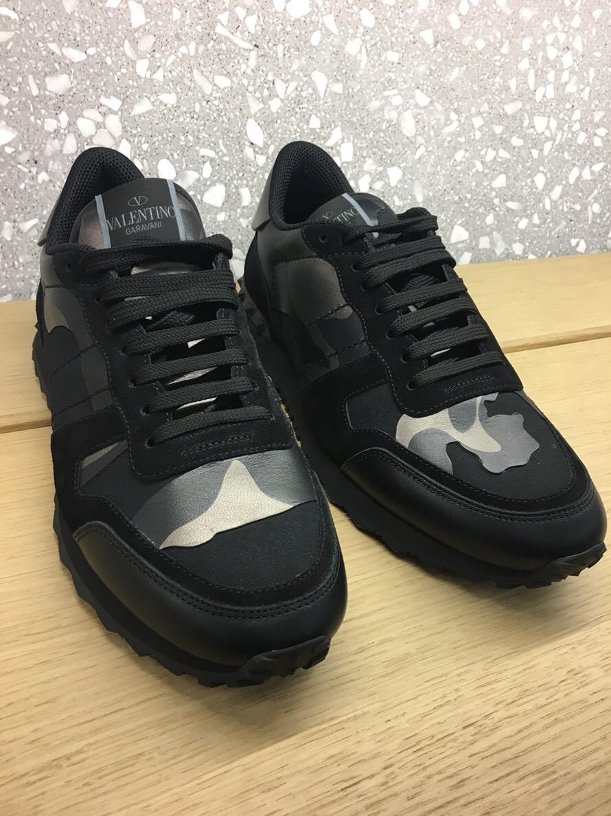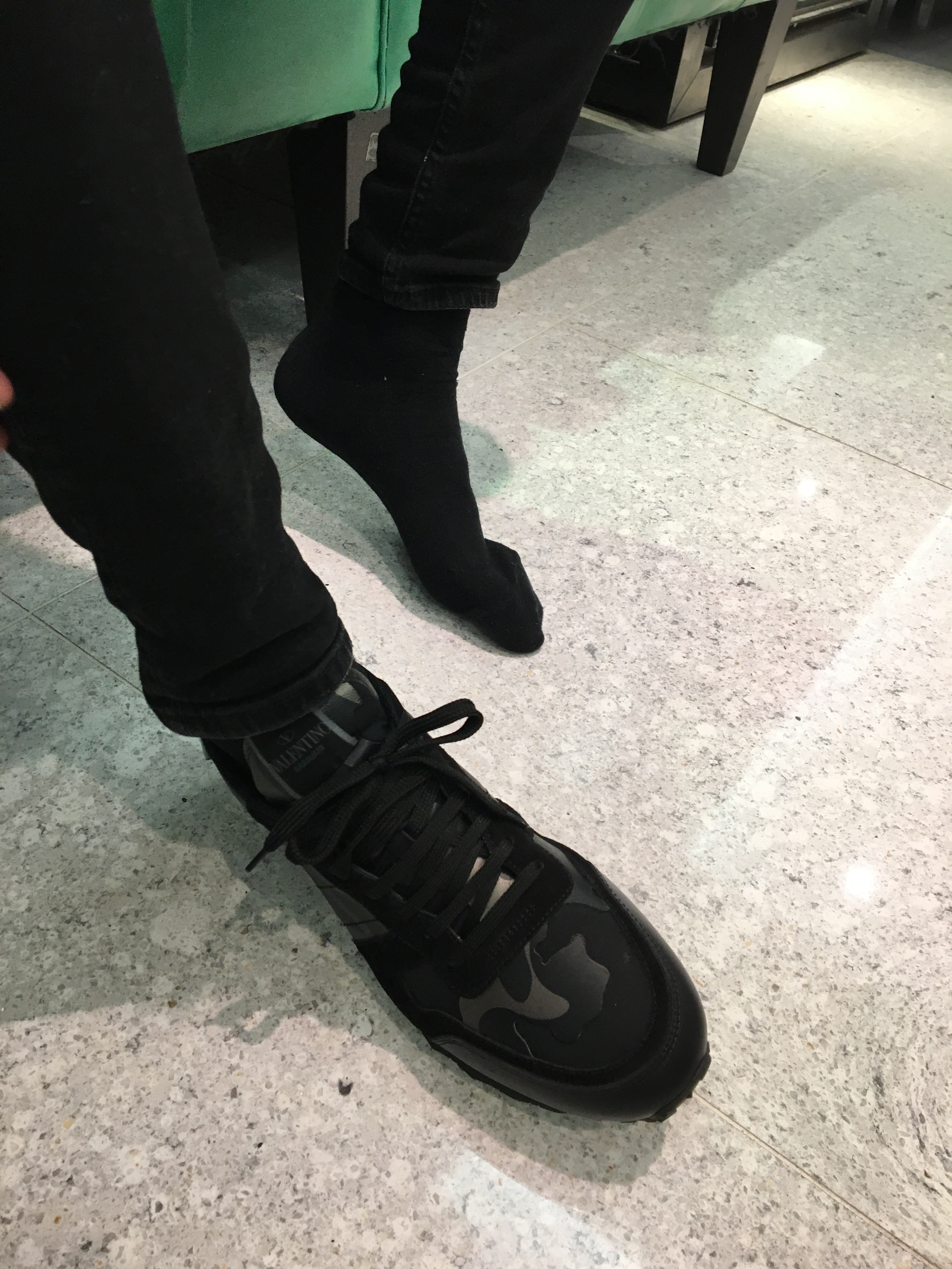 今季はスポーツブランドだけでなく、様々なファッションブランドがスニーカーを出しています。こちらはメンズですが、バレンティノのスニーカー。一目惚れして、誰かさんはこっそり試着中。