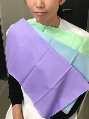 診断の結果、Y様には柔らかいパステルカラーよりも、より暖かく深みのある左のオータムカラーの方が、断然、女性らしく、柔らかく、美しく見えるという不思議!