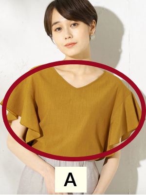 例えば、先に挙げた二の腕のお悩み、隠そうとして選んだトップスがこんなトップスだったら、あなたの気になるお悩みをさらに強調させているかも?