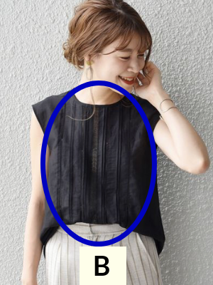 写真写りから見ても、二の腕〜上半身、上半身がスッキリ見えるのは少し二の腕を出すBのようなスタイル