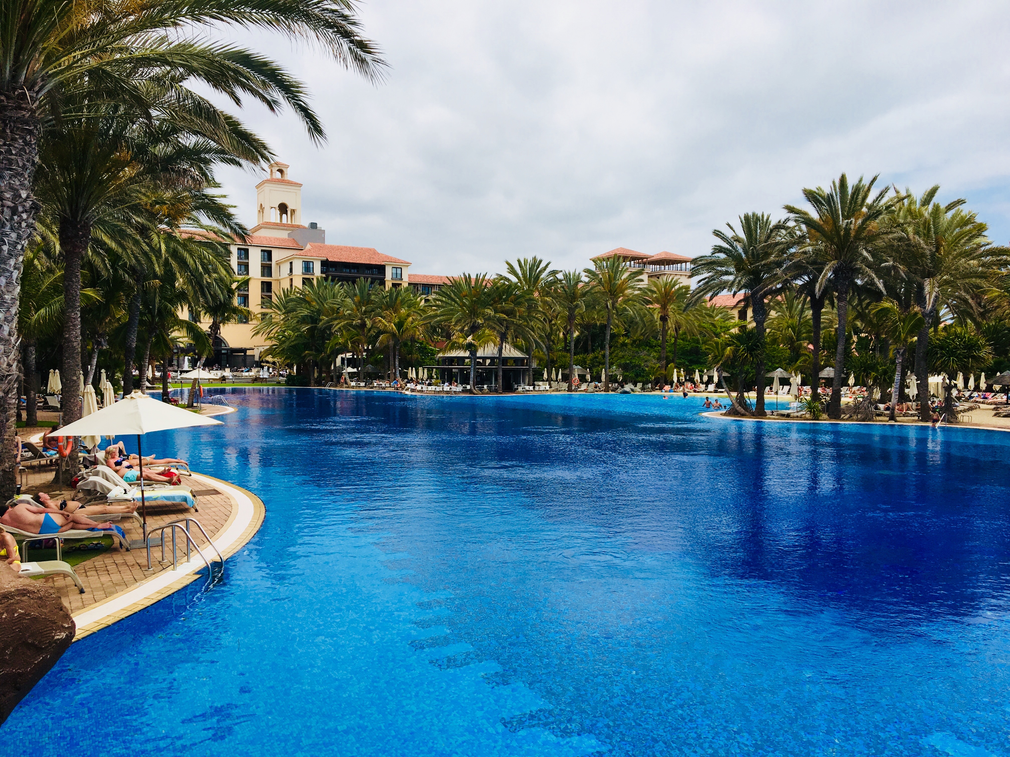 若干プールに入るには肌寒い日も、ヨーロッパの人はビーチやホテルのプールで、ゴロゴロしながら過ごすのが一番好き。笑