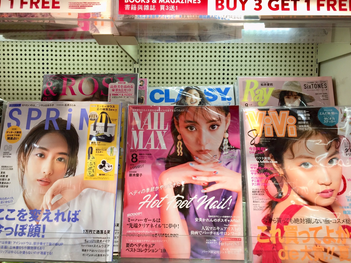 アジア圏のハブ空港でもう一つ気づくのが、日本のファッション雑誌の取り扱いの高さ。写真は日本語Verですが、日本の雑誌の ‘現地語Ver’ というのにも結構出会います。(現地で需要があるために、わざわざ翻訳されているということ)