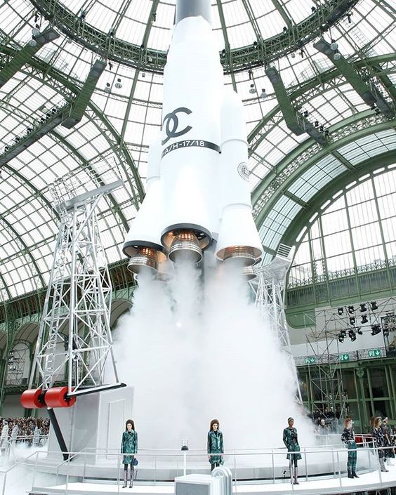 ある時はパリのグラン パレで、宇宙をテーマにコレクションを発表。ショーの最後に宇宙船を飛ばしてみたり!