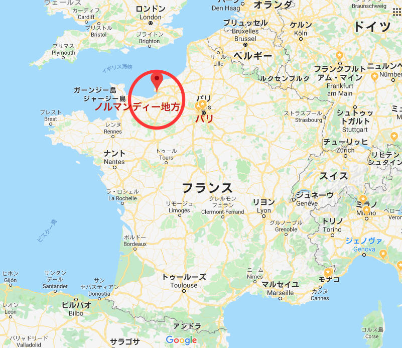 下記がフランス ノルマンディー地方の場所。パリから1.5時間〜2時間くらいのところにあります