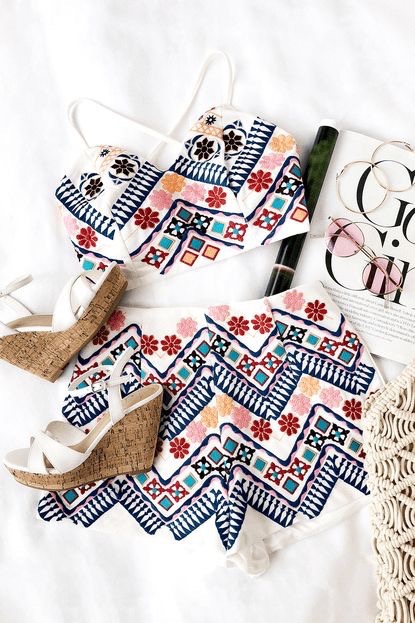 無難なTシャツにジーンズだけでなく、その場所のカラーに馴染む、柄のあるワンピース、ショートパンツスタイルも持って行くと、よりリゾート気分を味わえますよ!