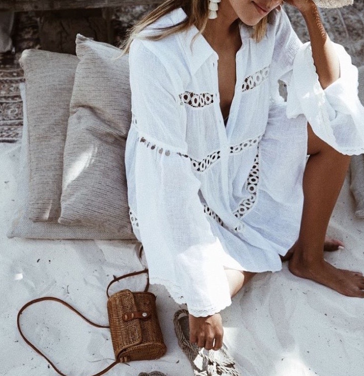 これはビーチリゾートなら本当に使える色。なぜなら、リゾートの青い海、青い空にホワイトが良く映えるから。パーソナルカラータイプで純白が似合わない人も、オフホワイトなど、ご自身の似合うホワイトを探すといいですね◎