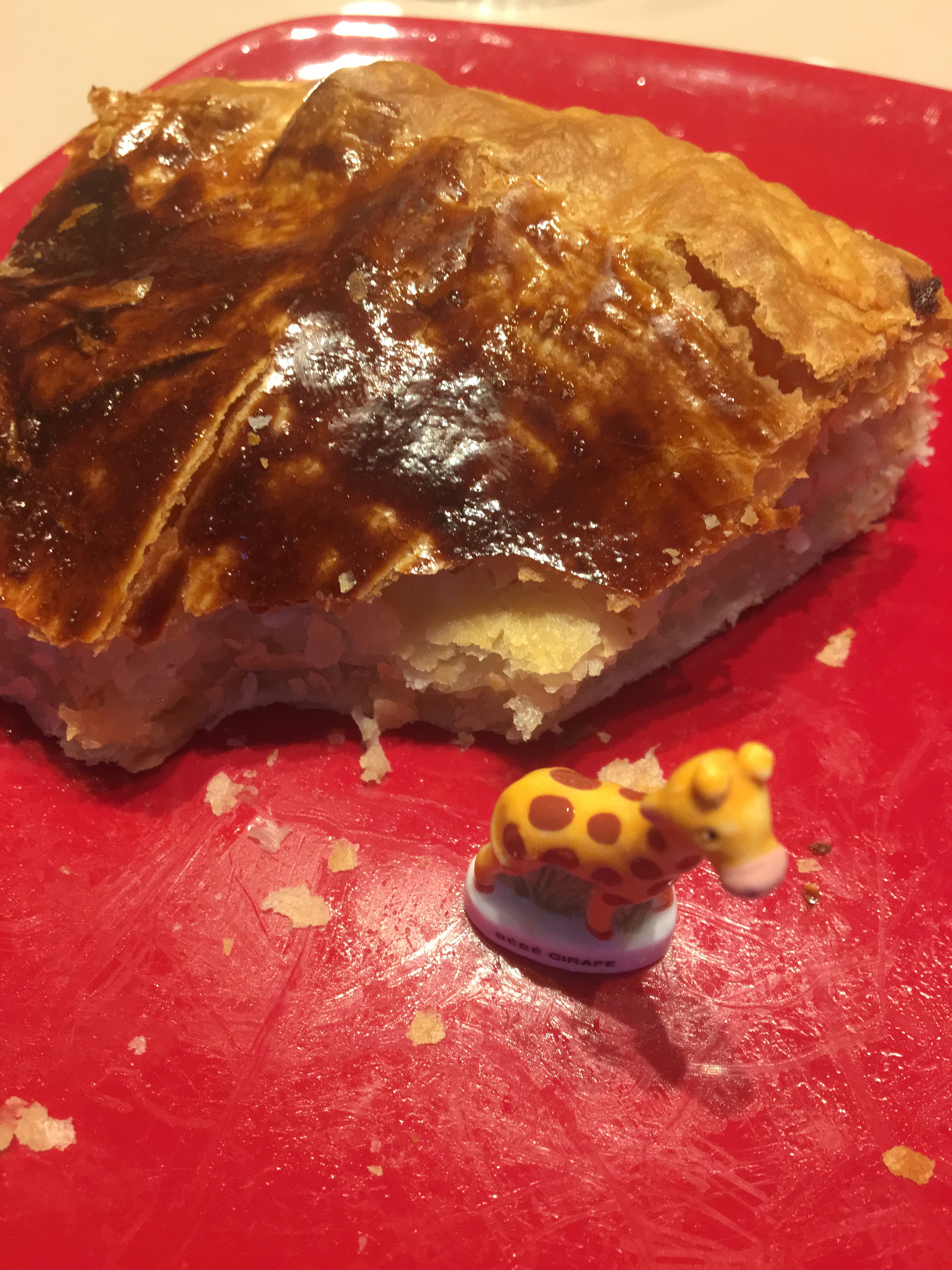 アーモンドクリームが入ったケーキに、小さな陶器の人形を入れて、その人形が入っている人が ‘今年の王様’ (おみだくじで言う、大吉かな)になります◎