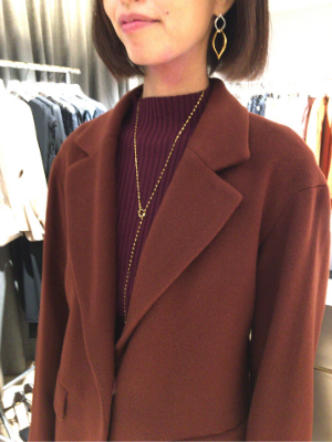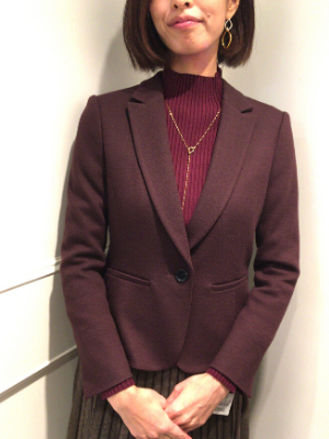 羽織のコート、ジャケットも、カラーインナーと相性の良い、美しい個性的なボルドージャケット、お顔を華やかにする上品なブラウンを。